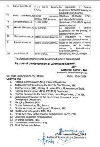 33 AEEs among 82 officers transferred in JKPDD by Government April 16, 2026 by By Times of Kashmir News Desk Follow our WhatsApp Channel for instant updates — Join Now 33 AEEs among 82 officers transferred in JKPDD by Government lo