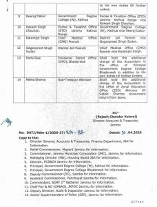 • Rakesh Singh Chauhan transferred to Government Degree College (W) Kathua