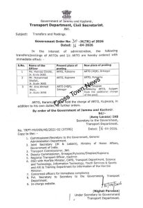 Administrative Move: J&K Govt Transfers Three JKAS Officers :JAMMU, Apr 16: Jammu and Kashmir Government orders transfers and postings of three JKAS Officers , posted as ARTOs.
