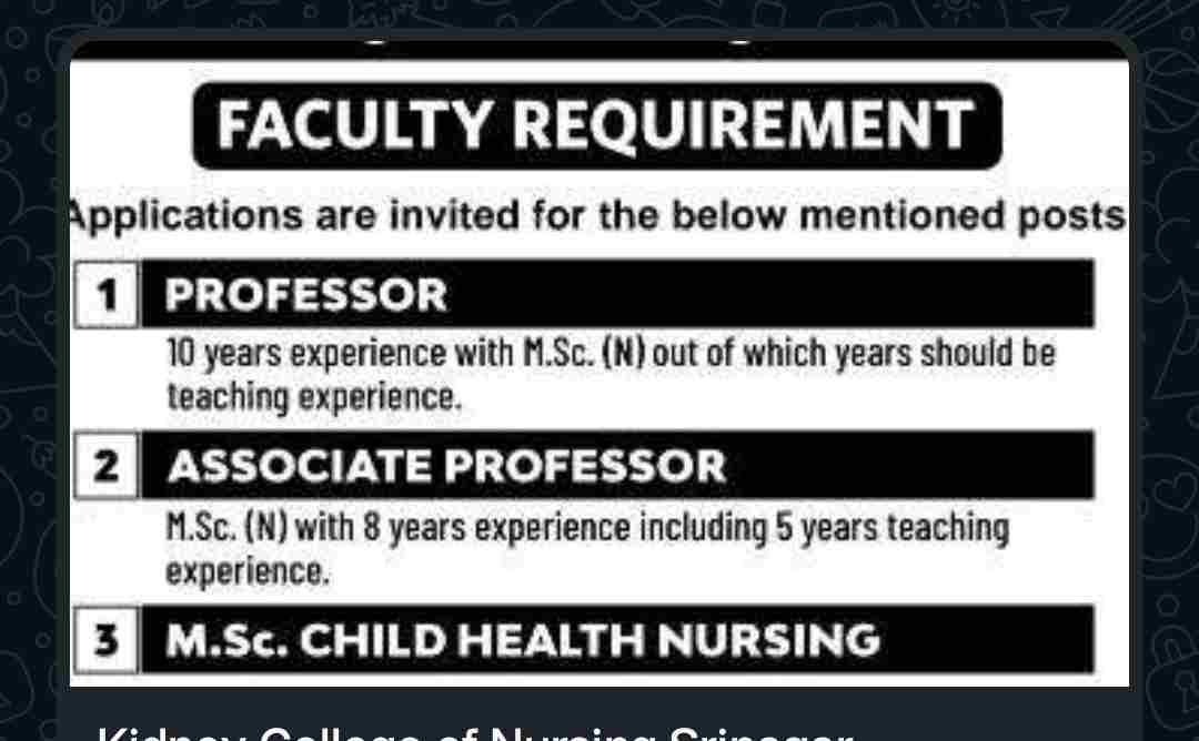 Kidney College of Nursing Srinagar Recruitment 2025: Faculty Vacancies Announced