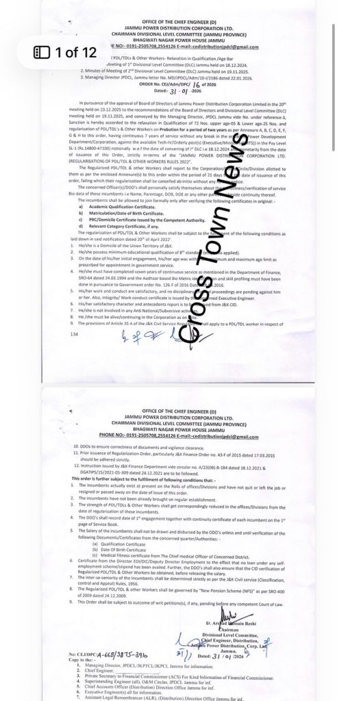 Jammu and Kashmir Government regularised 167 Daily wagers of Power Development Department