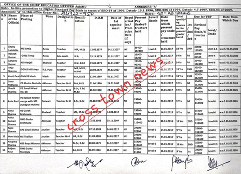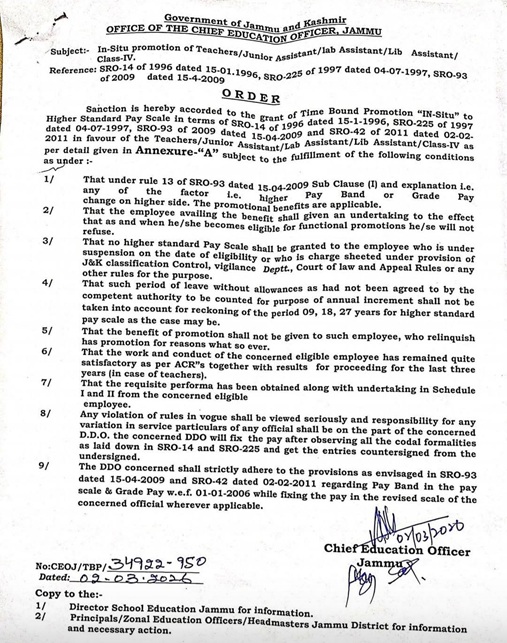 March 02: Govt ordered promotions of 35 Teachers/Junior Assistants etc, copy with order read as under:-