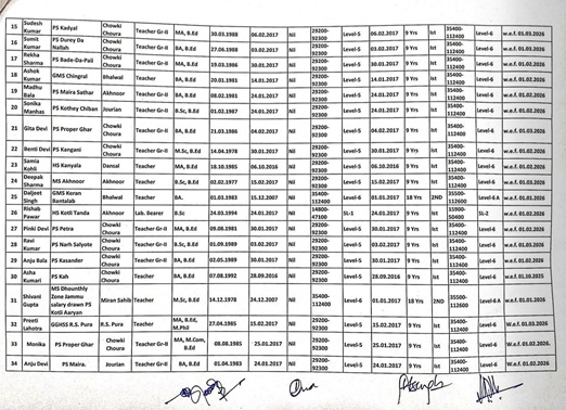 Jk Govt ordered promotions of 35 Teachers/Junior Assistants