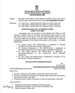 Several IAS Officers Re-Designated in J&K Following Promotion to Higher Administrative Grades